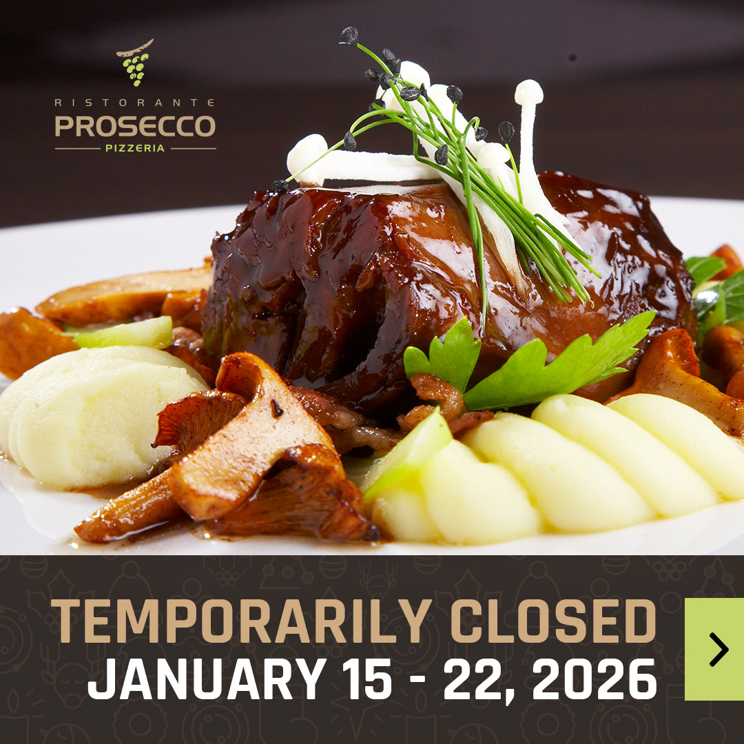 From January 15 to January 22, 2026, Ristorante Prosecco will be temporarily closed ...